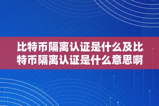 比特币隔离认证是什么及比特币隔离认证是什么意思啊