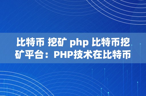 比特币 挖矿 php 比特币挖矿平台:PHP技术在比特币挖矿中的应用与发展 比特币 挖矿 平台
