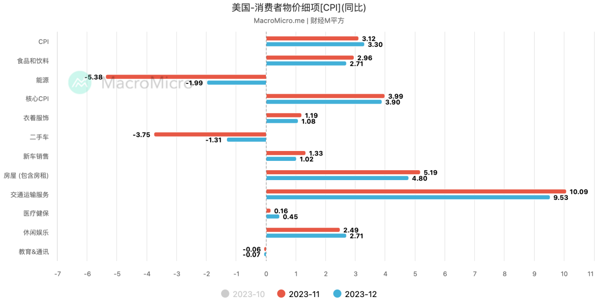 例如,和2022年12月 CPI 数据相比,2023年12月的 CPI 年增长率为 3.30,也就是 12月的 CPI 同比增长率。