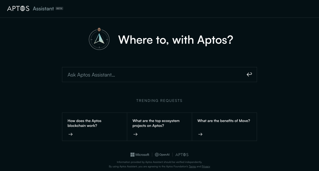 此前,Aptos通过向微软购买云端服务架设节点,并声称达成「合作」时,也透露了与Aptos Assistant有关的初步消息。