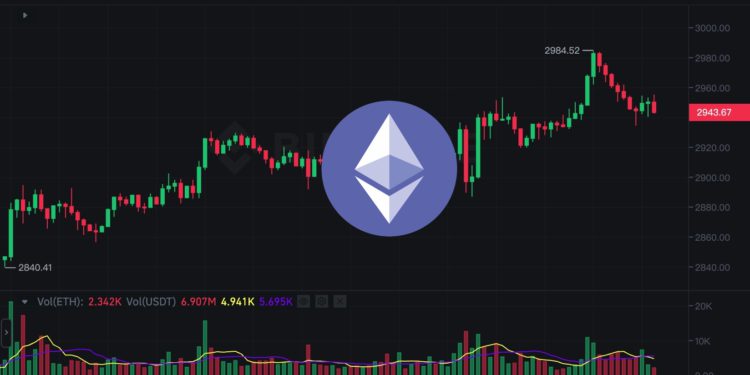 截稿前,ETH略有下跌报2,943美元、近24小时上涨2.42%。