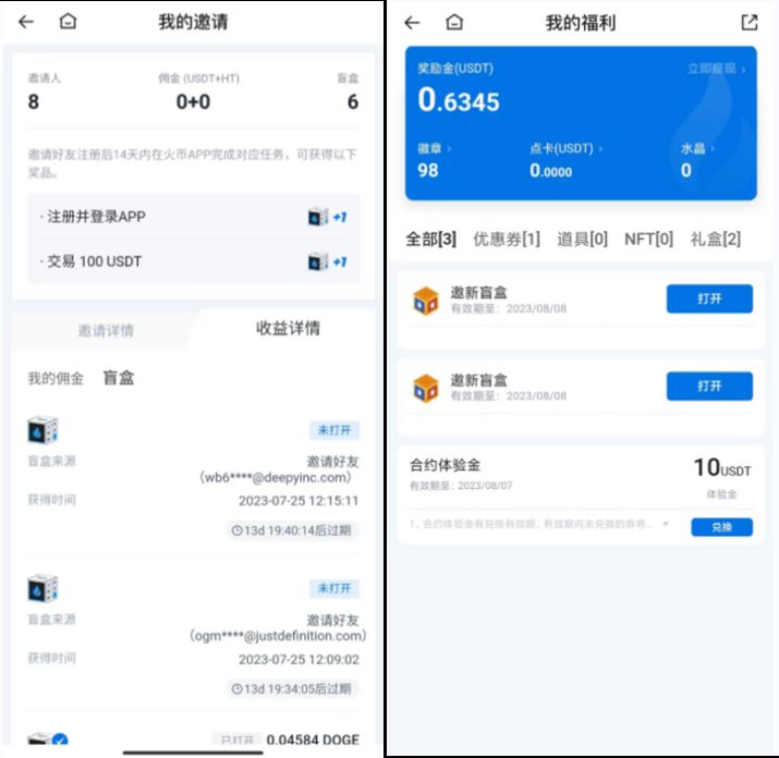 请注意,为了确保您和您的好友都能成功获得盲盒奖励和**返佣,您的好友必须在注册后14天内登录火币App,并达到规定的交易量要求。若您的好友在此期限内未登录App,即使交易量达到要求,您和您的好友都将无法获得额外的奖励。
