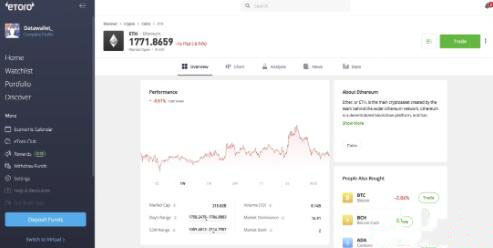 eToro 成立于 2008 年,是那些热衷于以太坊投资的人的主要选择,强调信任和多样化的资产选择。作为一家拥有 3,000 万用户的全球性大公司,eToro 展示了超过 3,000 种资产,不**于现货以太坊,还包括其他资产。他们的多元化平台涵盖股票、商品等,使投资者能够在一个地方建立多元化的投资组合。这意味着你也可以购买受益于以太坊的传统股票,比如 Coinbase。