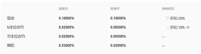 三大交易所对比相对来说币安交易所手续费最便宜,挂单和吃单的成交手续费均为0.1,以下是三大交易所的手续费收取明细: