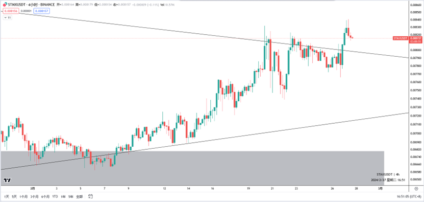 STMX:周线收出阳线,走得很健康,短期已经突破了下降趋势线。如果收周线能站稳,那么可以确认周线级别的突破,继续持仓即可。