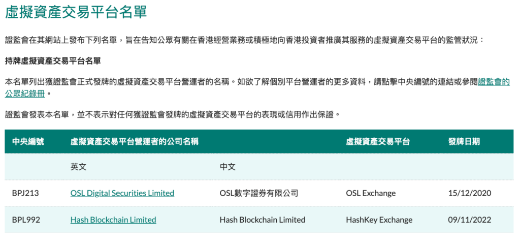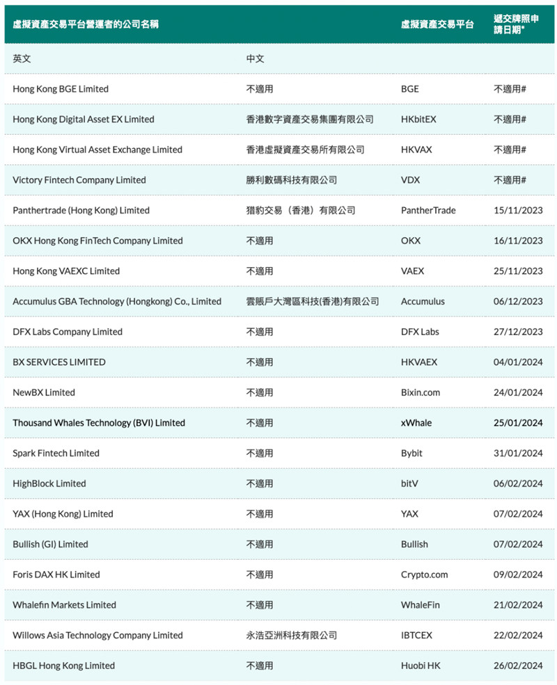 截至目前,取得虚拟资产交易牌照的只有OSL、HashKey,共计其他20家实体仍在申请中。