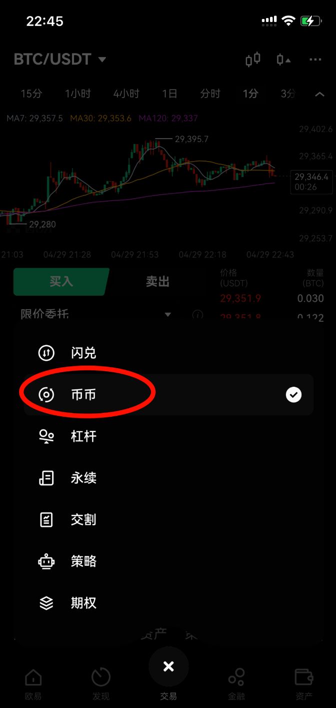 6.交易页面在支持在现货、保证金、永续、期货、期权、转换和交易机器人之间切换。图表页面现在支持更多的交易选项卡,从而提供更多的交易类型。