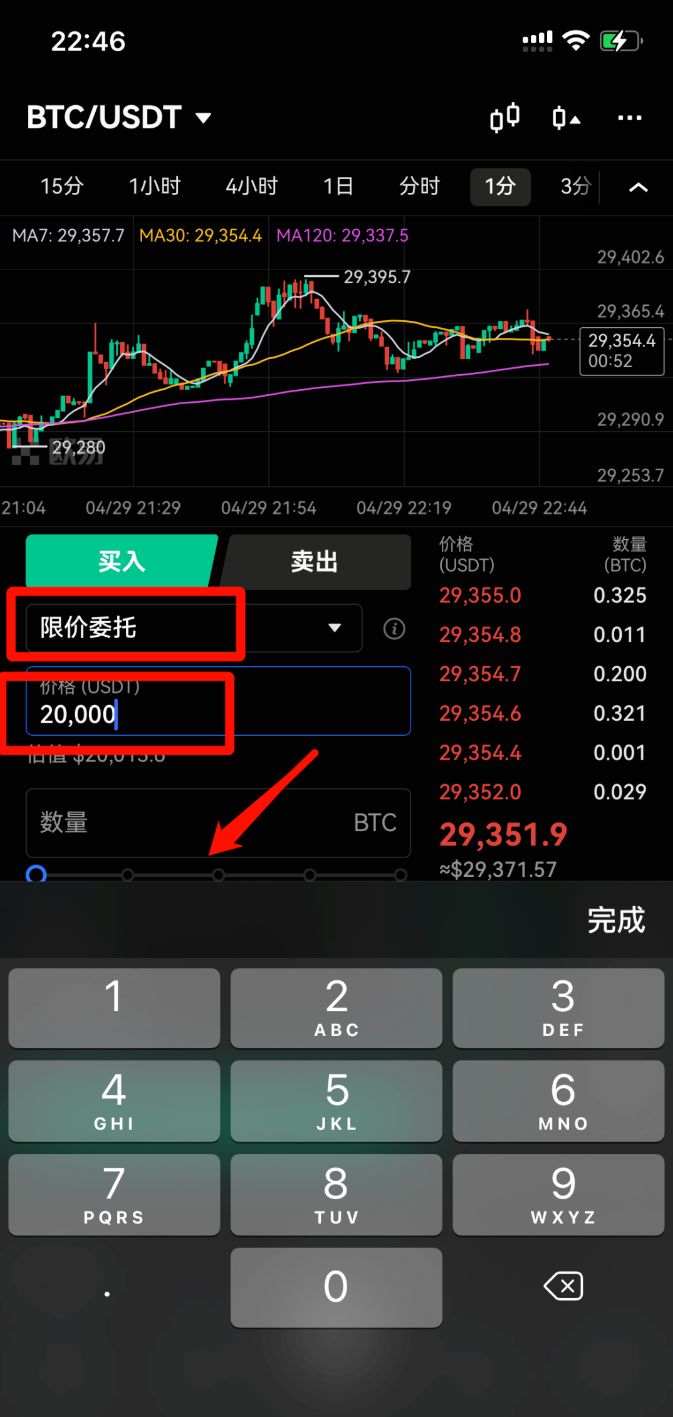 2:选择长按 交易,选择币币,选择”限价委托“,输入我们想要购买的货币价格,数量那里选择购买百分之1~100 即可进行交易了。(不建议一口气梭哈,可分批不同点位挂单,和炒股是一样的)