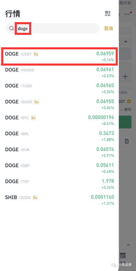 由于我们使用的是usdt,搜索相关币种会出现很多交易对,我们需要选择后缀为usdt的交易对