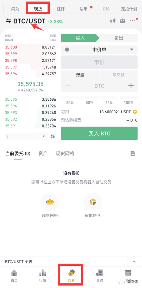 点击最下面的交易,至此,我们就可以购买比特币等币种啦~