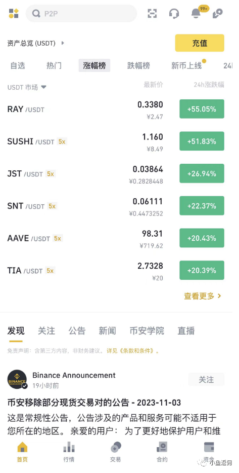 进入首页之后便可看到**名称以及对应的价格和涨幅波动