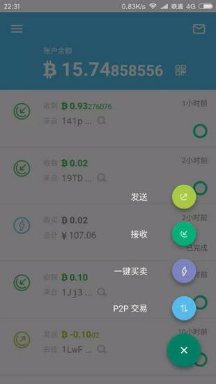 1,一键切换以比特币或法币显示投资组合价值;