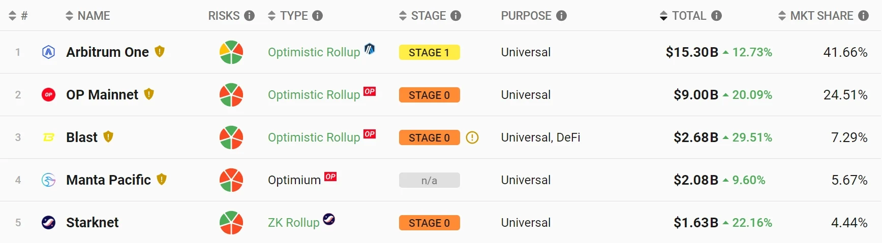 其中,锁仓量前五大Layer2分别为: