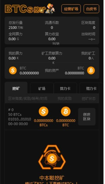 4、中本聪btcs挖矿app官网版app一款全新的矿池经营、手机挖矿赚钱的软件。