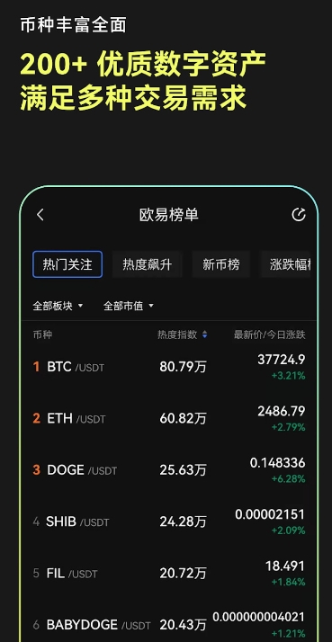 4、完成数字资产的充值后,即可进行交易。欧意提供币币、杠杆、合约等多种产品供您选择。
