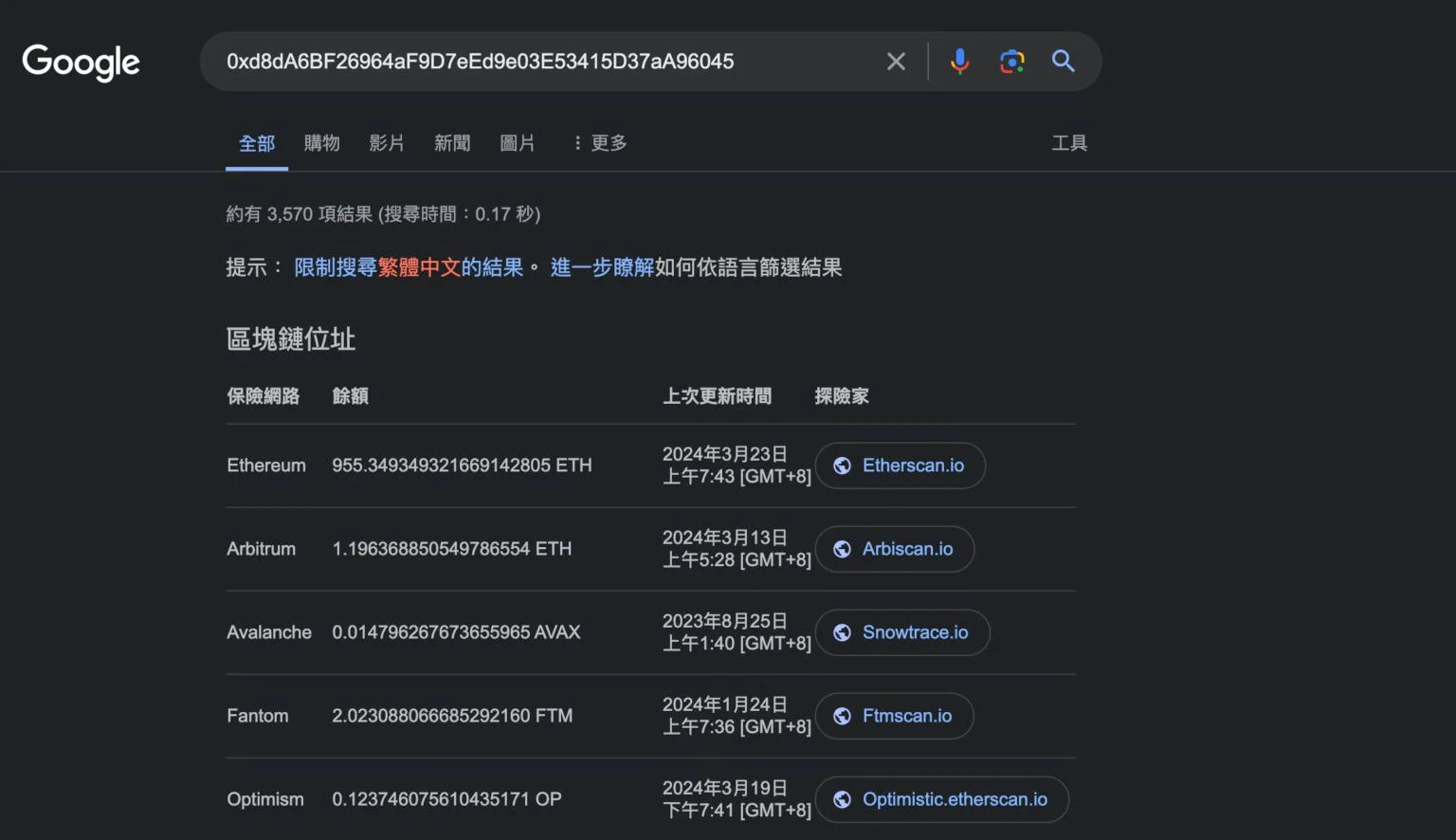 以上就是Google搜索已支持ENS域名!一键查询你的钱包余额的详细内容,更多请关注本站其它相关文章!