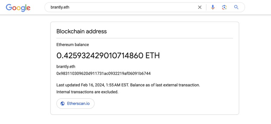 Google扩大支持ENS域名关联钱包查询