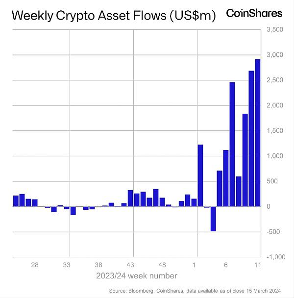 BTC这轮周期有什么不同?随着减半的临近,与ETF不断增长的需求相比,新开采并释放到流通中的BTC的影响变得越来越小。ETF从市场上撤出的数量是每天铸造的BTC数量的几倍。目前矿工每天向市场带来大约900个BTC。减半后将下降至 450个BTC,在过去的市场条件下,这可能会加剧BTC的稀缺性并推高价格。