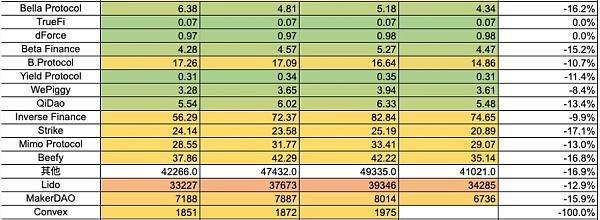 本周总TVL为945亿美金,整体下跌84亿,下跌幅度为8.2%。BTC本周回调幅度接近20%,成功在60000的位置撑住,向上力度也比较强势。本周主流公链TVL除了SOLANA链以外**大跌。最近最火热的公链**属于SOLANA链,过去一周上涨6%,过去一个月**85%。除此之外,ETH链最近表现比较低迷,本周ETH链下跌14%,POLYGON链下跌15%,OP链,BLAST链,ARB链,均下跌9%左右。BSC链下跌7%,TRON链下跌8%。