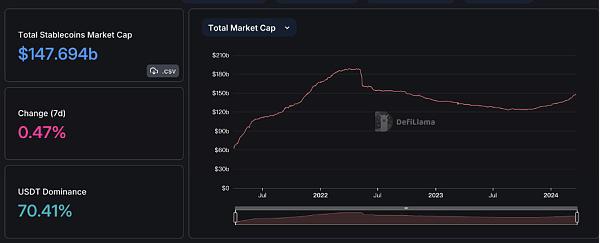 稳定币市值环比持平,场外资金流入速度放缓。算稳USDE的供应量迅速超过10亿美元,主要因为质押收益率高达60%。