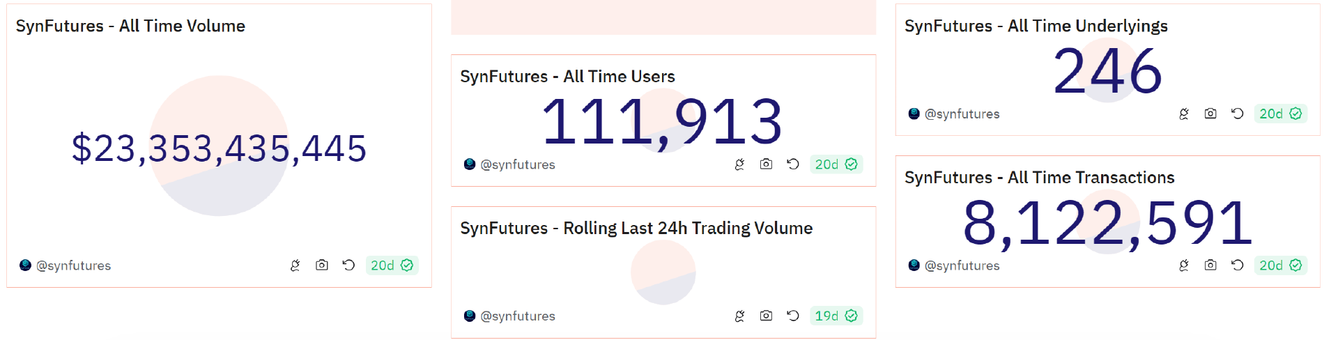 在所有链上衍生品协议之中,Synfutures 也以**至少一个数量级的同期增速,: