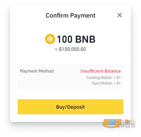 4、如果您的钱包中余额不足,可以点击[买入/充值]进行充值。