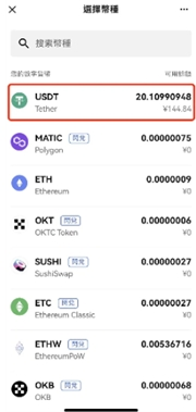 3.根据当前资源或喜好,选择想要卖出的币种,系统会自动跳转至数量填写界面。