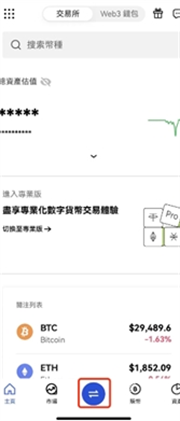 1.打开欧意交易所app,点击首页下方的“交易”按钮,进入交易页面。