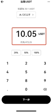 4.填写需卖出的币种数量,确认后点击进入下一步。