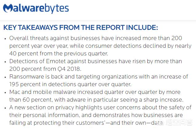 据悉,Malwarebytes 的这份报告,基于 2019 年 1 月 1 日 - 3 月 31 日期间,从其企业和消费者软件产品中提取到的数据。