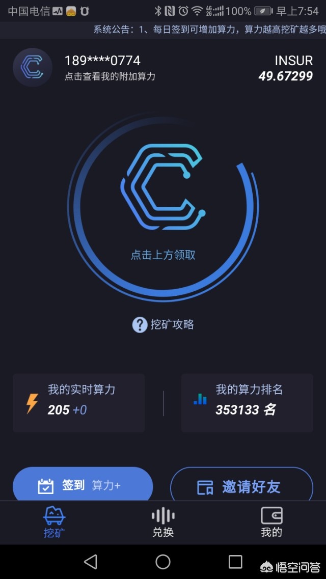 InsurWallet保险币现在玩的人也非常多,注册也非常简单,一个手机号码就搞定,新用户注册送一百算力,身份证实名认证在送一百算力,InsurWallet保险币的算计值是和保险币挂钩的,有多少算力,挖保险币的速度也就越快,还可以邀请好友,每邀请一个好友增加十点算力,没有邀请限制。不过保险币的价格在是两分钱一个,可以累计在哪里慢慢挖,以后肯定会上涨的。