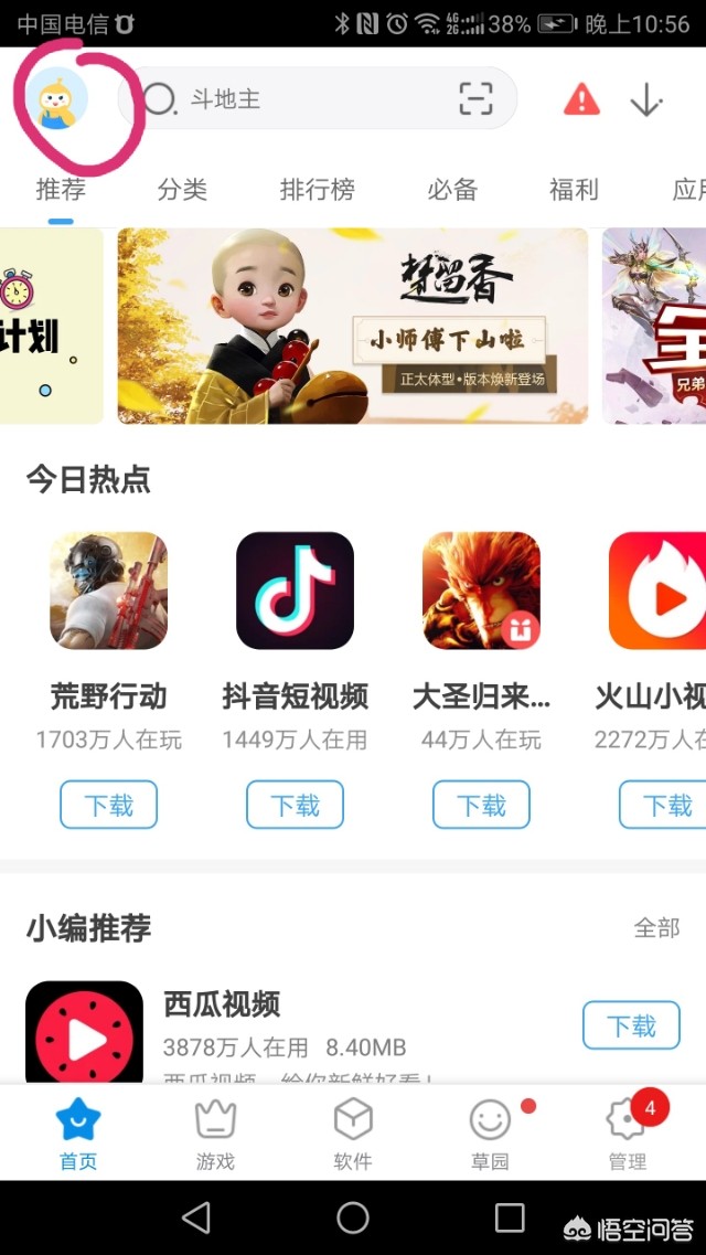 手机下载360手机助手,左上角的图标进入