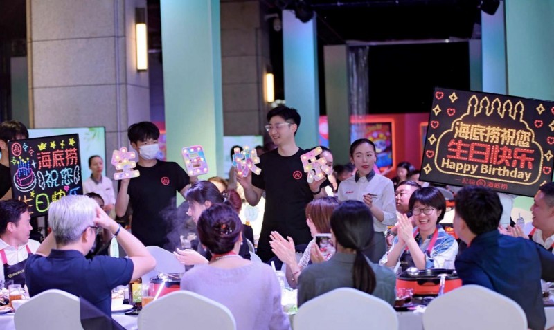 海底捞员工为参加抱团大会的老顾客过生日