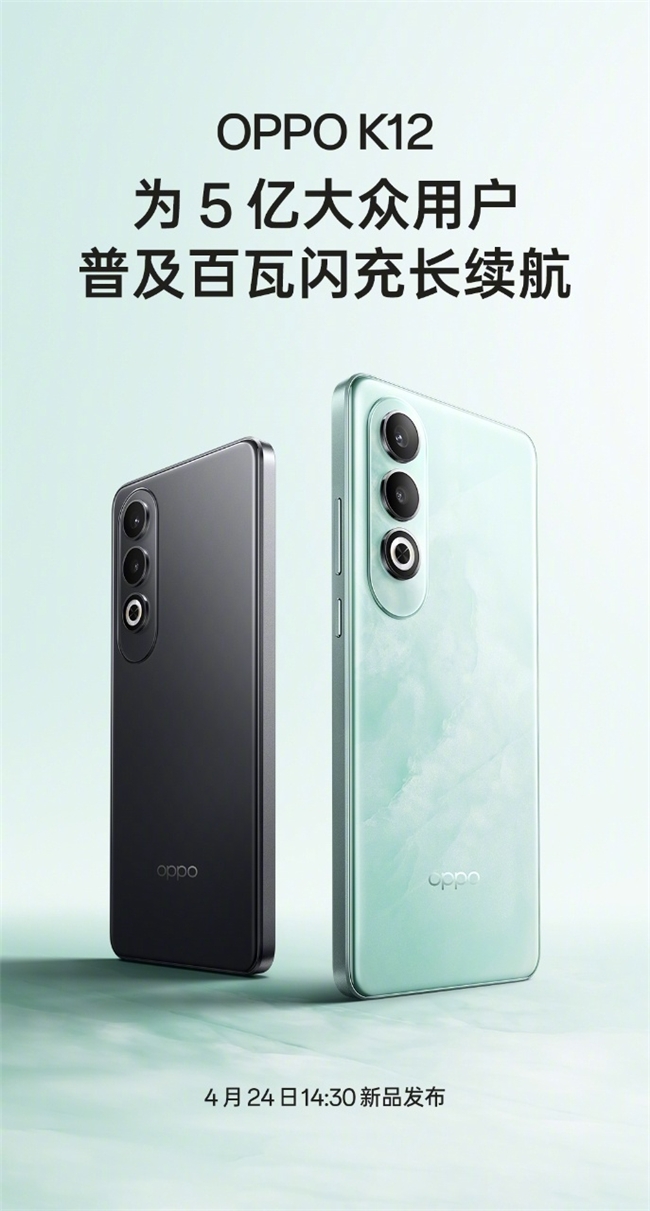 OPPO K12将于4月24日发布,普及百瓦闪充长续航