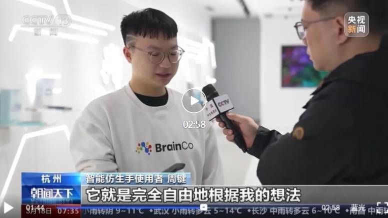 3月5日晚,**新闻播出了《一年之计看两会丨发展见“质”,**向“新”》专题节目,****代表、政协委员们就政府工作报告中提出的发展“新质生产力”展开讨论。强脑科技作为脑机接口领域的代表企业登上节目舞台,合伙人兼**副总裁何熙昱锦与间嘉宾连线,探讨脑机接口作为新质生产力对普通人日常生活的影响以及未来应用方向。 “钱袋子”服务“脑瓜子” 让创新梦想成真 **《朝闻天下》3月18日播出