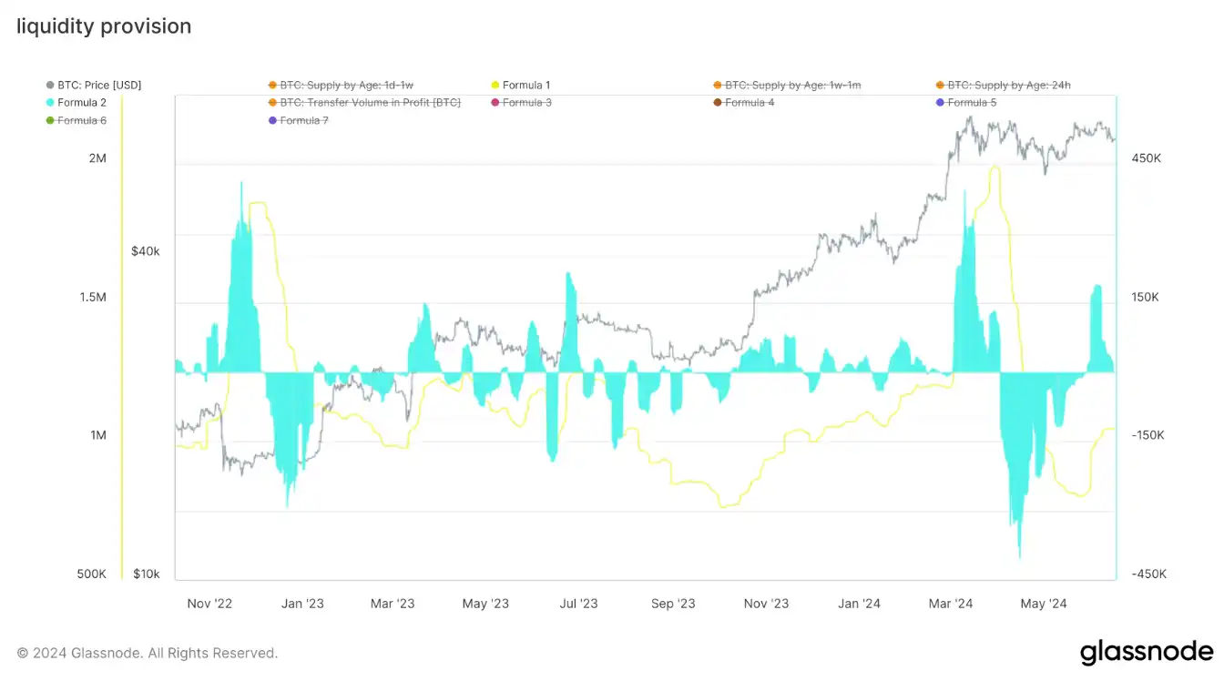 BTC 的流动性供给决定了场内的新买方情绪,目前正处于放缓增长的状态。可能仍需⼀段时间修复流动性供给的状态。
