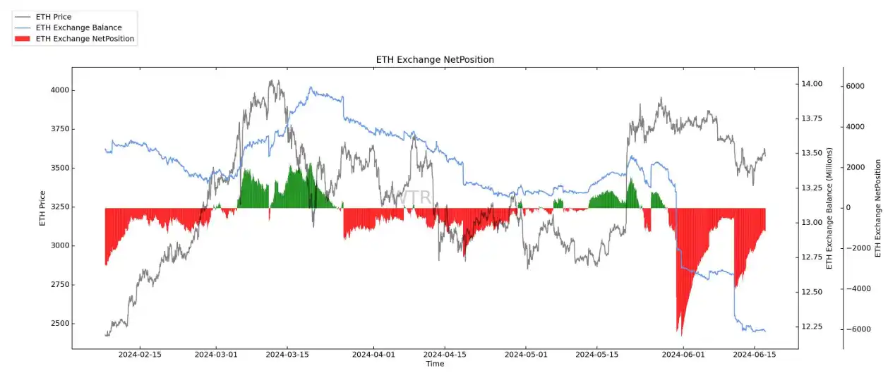 4. 交易所净头寸整体呈现大量流出累积状态,抛压较低。