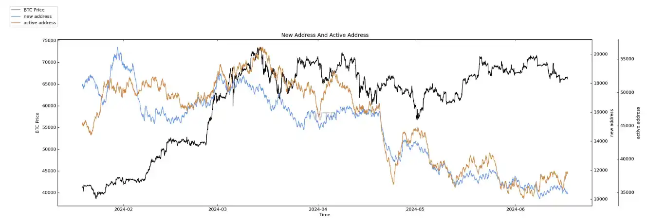 短期持有者成本线来到 63K 附近,市场的持续性震荡也表明恐慌情绪 (橙线) 在当前价位如无外部黑天鹅条件的话,很难持续性上涨引起市场巨幅下跌。