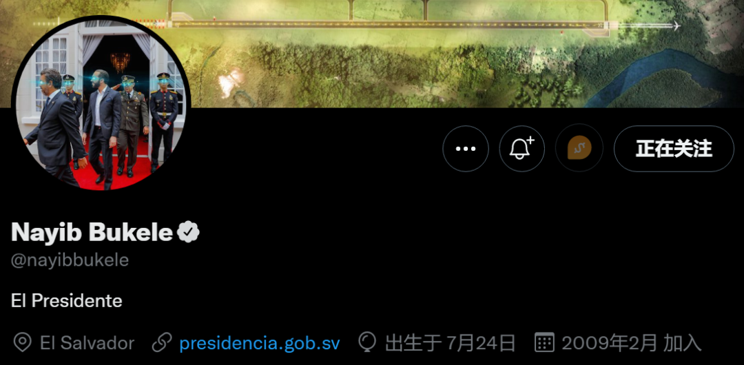萨尔瓦多在其总统 Nayib Bukele 的积极带货之下,可谓是「举国 All in BTC」的典范,至今 Nayib Bukele 的社交媒体主页头像都是加密朋克气息的激光眼图片。