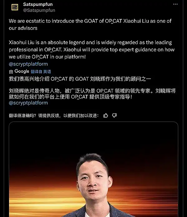 ● @Satspumpfun 官宣,OP_CAT 专业人士 @scryptplatform 成为其平台顾问。