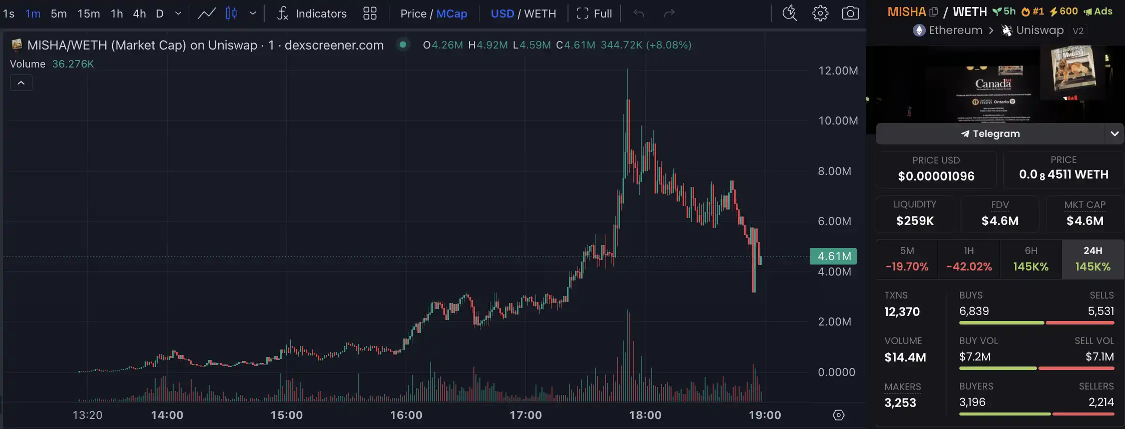 3. Vitalik 宠物狗同名 Meme 币 MISHA 市值突破 300 万美元,创历史新高