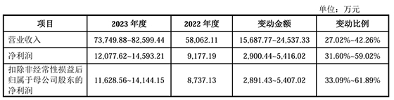 关于审核**意见落实函提出的“说明未来业绩的可持续性,并完善经营业绩可持续性的相关风险提示。”,佳源科技在2023年9月更新的回复函中预计,其2023年营业收入为7.37亿元至8.26亿元,同比增长27.02%至42.26%;其净利润为1.21亿元至1.46亿元,同比增长31.6%至59.02%。