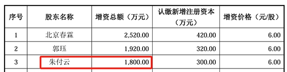 朱付云增资摘要,数据来源:上会稿