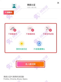 完成身份信息认证后,会自动跳转到人脸识别认证页面,仔细阅读人脸识别要求后,点击“去人脸识别”。