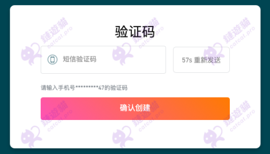系统将发送手机短信验证码至该注册手机号,填写短信验证码,点击“确认创建”,即可注册成功。