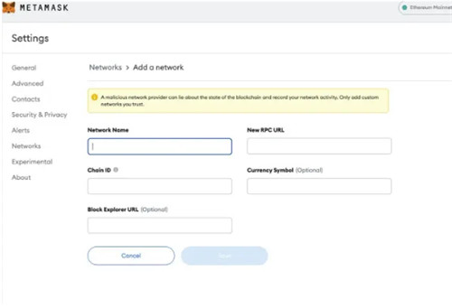 1.打开小狐狸钱包后单击“Ethereum Mainnet”,这里面会显示已经连接的网络列表。