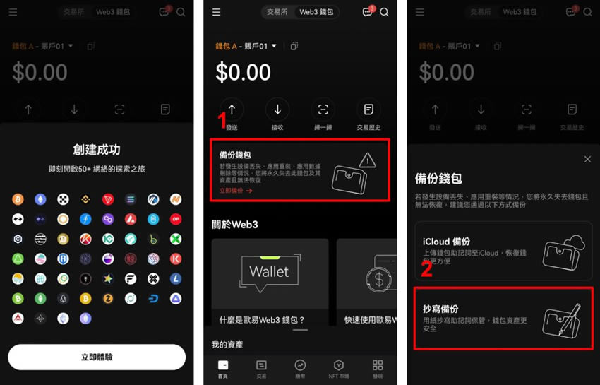 虽然 OKX Web3 钱包是整合在 OKX 交易所 App 当中,但在建立钱包时可以主动断开网路且不影响操作,将注记词/私钥外泄可能降至**。