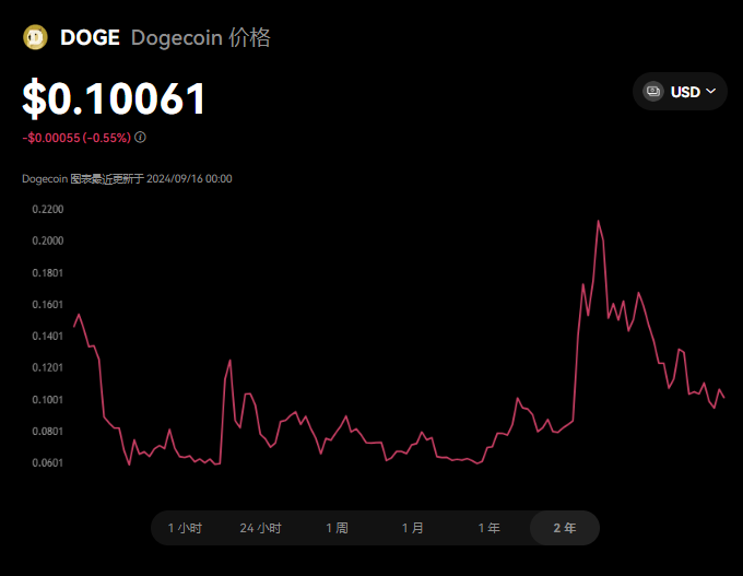 Dogecoin 价格表现 (美元)