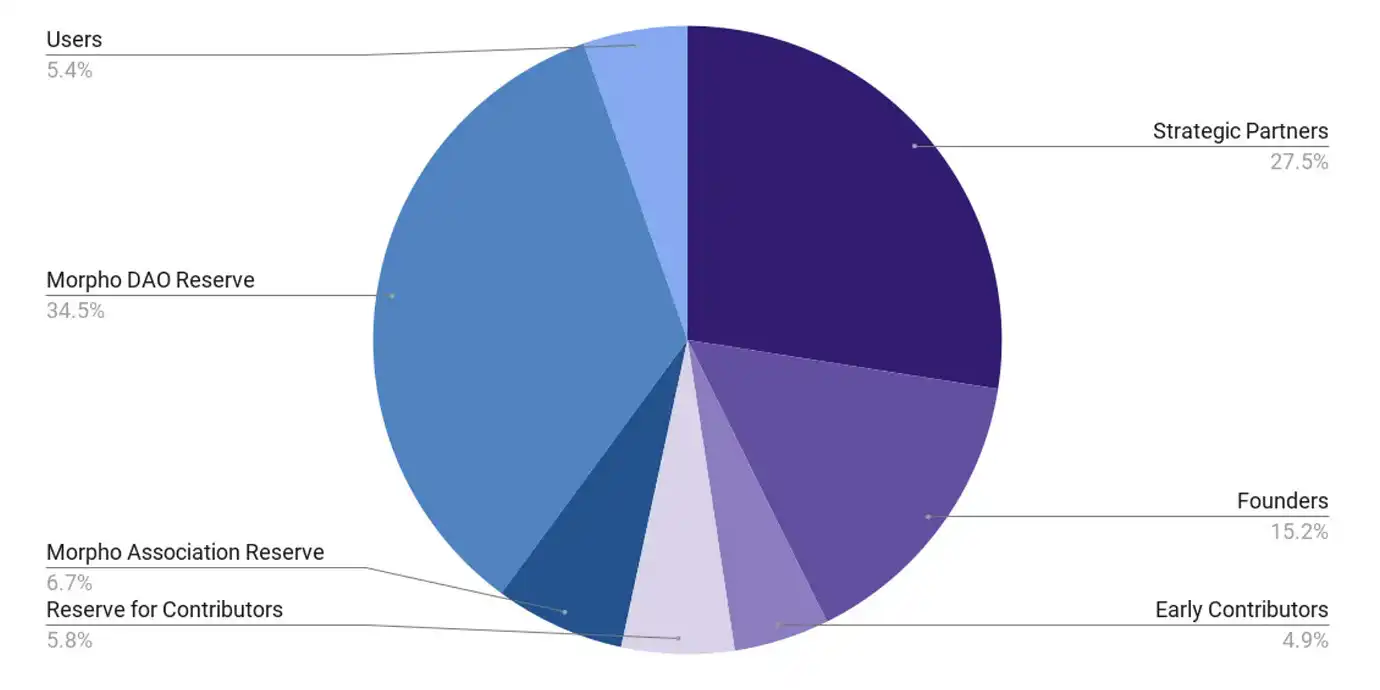 MORPHO 是 Morpho 协议的治理**,**的**供应总量为 10 亿。截止到 9 月份,MORPHO 分配情况为: