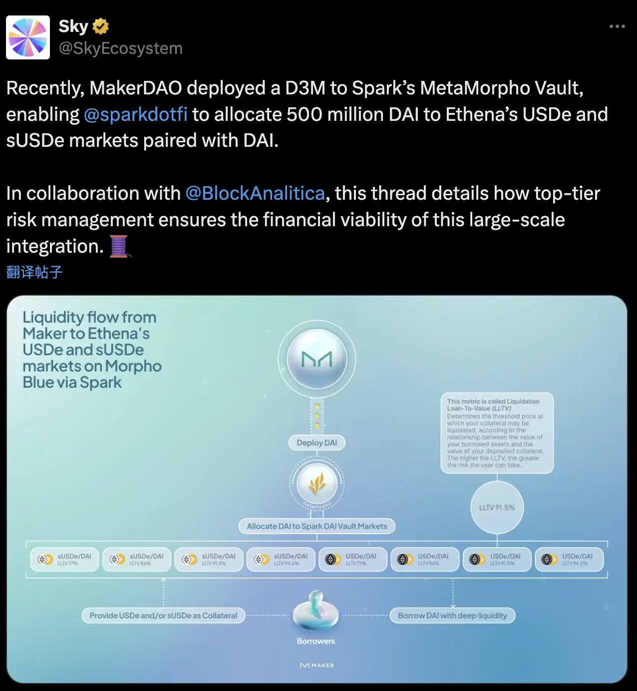 Morpho 某种程度上可以被当作企业级托管平台,公开透明,可以追溯。同时又满足了开发者和企业构建所需的**功能,并保持**控制权的要求——无需将治理权交给第三方或 DAO。今年 6 月份,Sky(MakerDao)就使用 Morpho 构建其 DAI 与 USDe 的借贷用例。